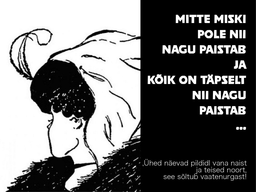 Kui Sa näed pildil noort neidu, siis lähemalt uurimisel ja vaatlemisel võid jõuda selleni, et märkad neid jooni, mis moodustavad vana naise kujutise. Ja vastupidi.